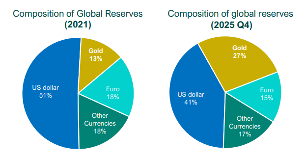 That demand matters because it is different from more traditional investor flows. It is less sensitive to short-term price movement and more closely linked to long-term objectives such as reserve diversification, reduced reliance on the U.S. dollar, and greater geopolitical flexibility. It also helps explain why gold has remained resilient through periods of broader market stress.