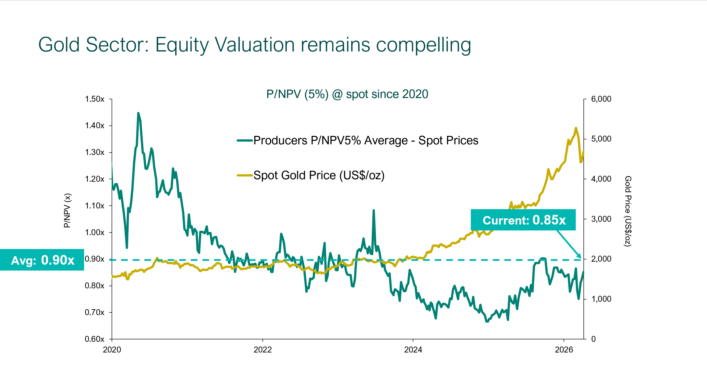 The distinction between bullion and equities is important. Physical gold may serve as a source of resilience and diversification. Gold equities, by contrast, can offer exposure to improving operating fundamentals, margin expansion, and the potential for valuation rerating if capital flows return more meaningfully to the sector.