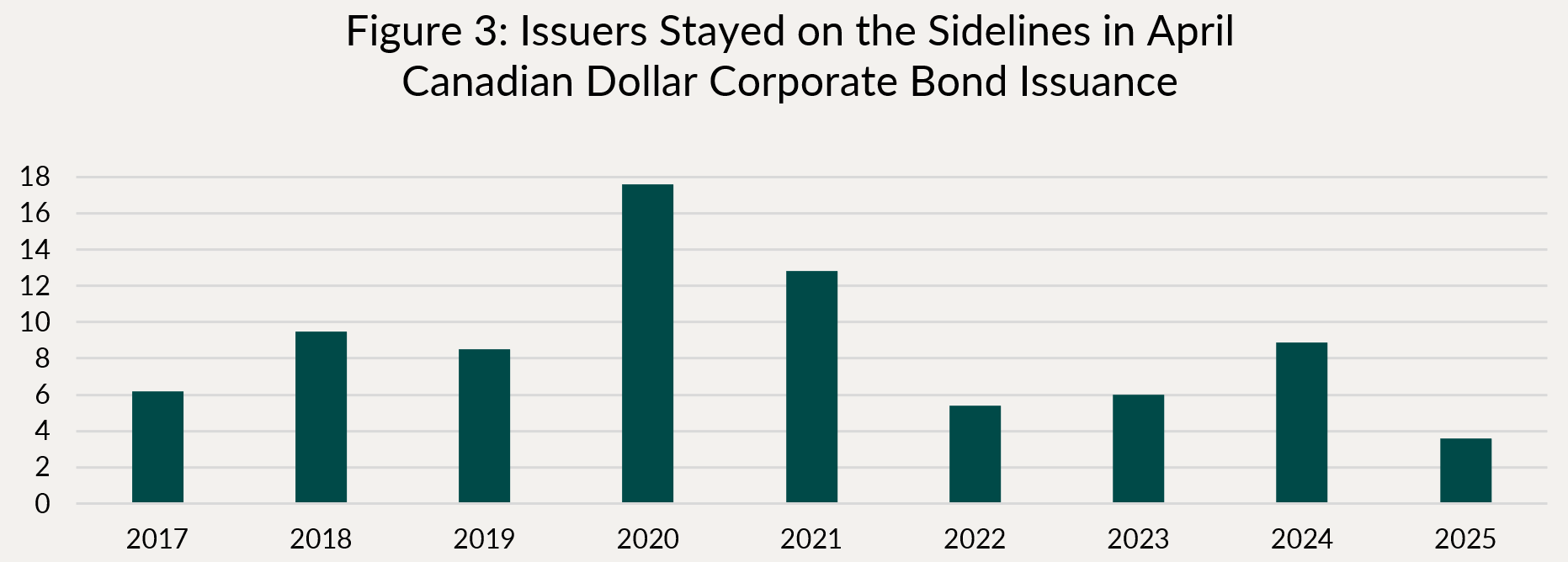 With the volatility in markets, corporate bond issuers stayed on the sidelines, leading to one of the slowest months of new issues on record (Figure 3 below). We were active in a few short-duration, higher quality deals this past month, such as CHIP mortgage trust, which offered a 3-year AAA 1st lien mortgage-backed bond with a spread ~35 basis points wider than equivalent large-cap Canadian banks. This is the kind of credit we are looking for these days, low duration, high quality and cheap to the rest of the market.