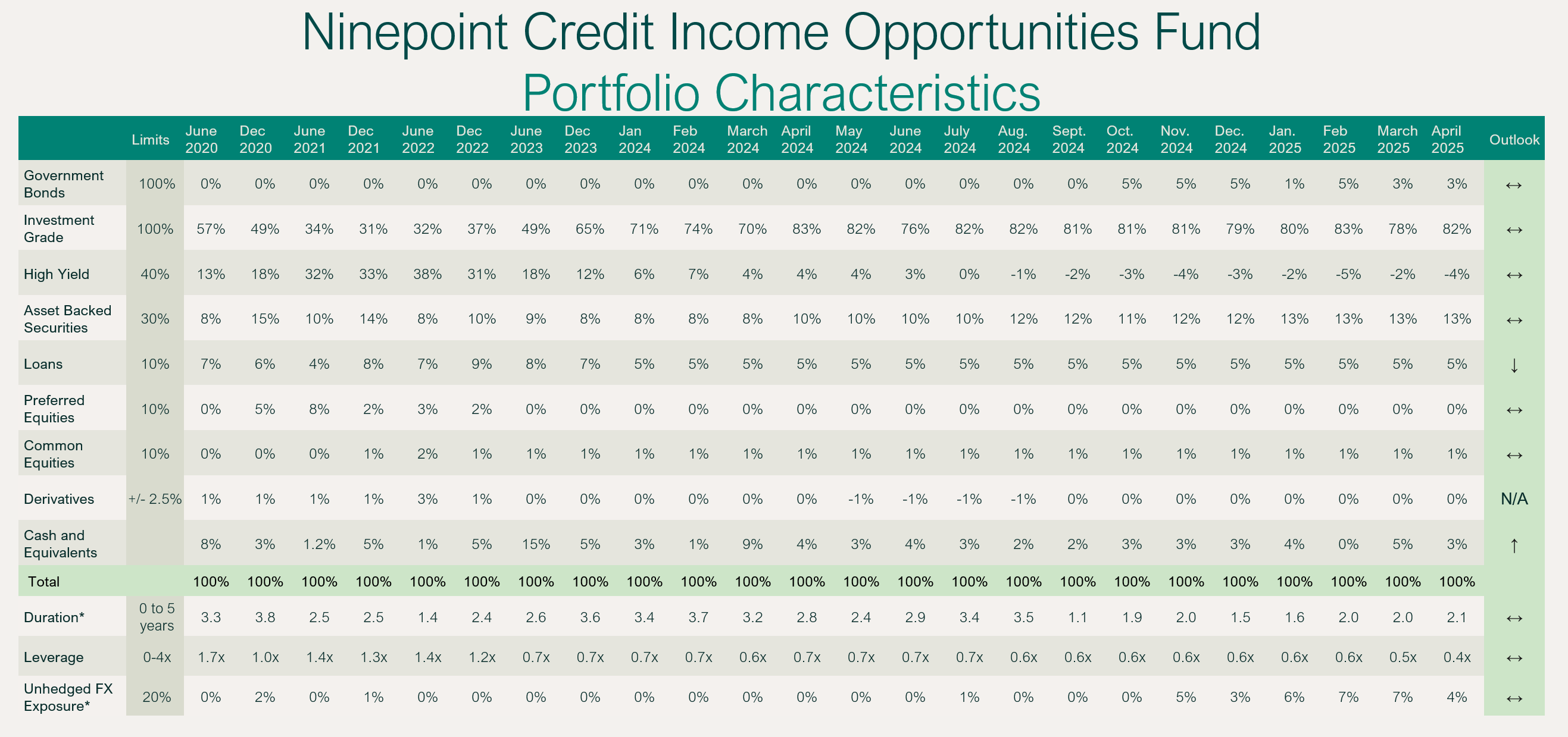 The fund was down 26 basis points in April, due to wider credit spreads. Leverage was down to 0.4x as we used cash from maturing positions to buy back government bonds. Duration was flat at 2.1 years while yield-to-maturity increased slightly to 5.7% as credit spreads widened.