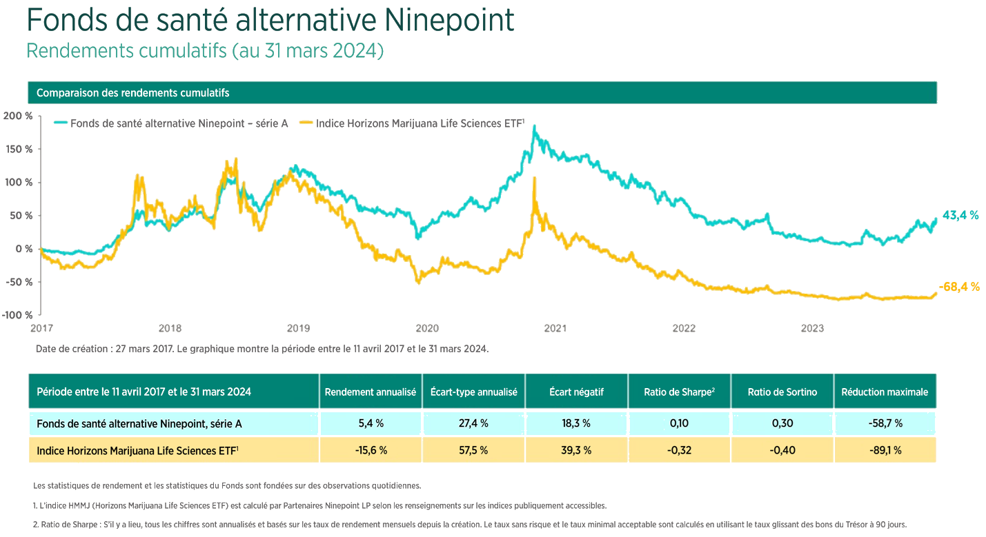 Fonds de santé alternative Ninepoint – Rendements composés¹ au 31 mars 2024 (série F, NPP5421) | Date de création : 4 août 2017